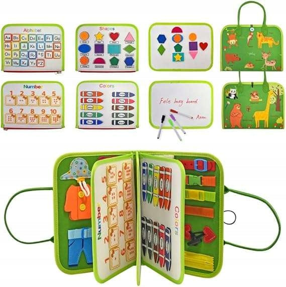 Cena regularna 69,62 zł PLNCena promocyjna 69,62 zł PLN Cena regularnaCena jednostkowa / zaTablica manipulacyjna książeczka Montessori edukacyjna do malowania zielona MONTESSORI BUSY BOARD DLA DZIECI: Ta filcowa tablica z zabawkami, zaprojektowana dla niemowląt, chłopców i dziewczynek, oferuje...