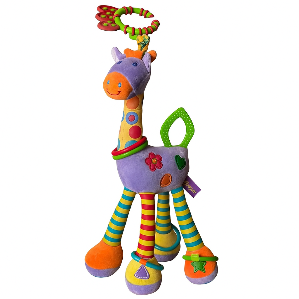 Żyrafa Fioletowa Edukacyjna z Kółkami – Grzechotka zabawki dla dzieci