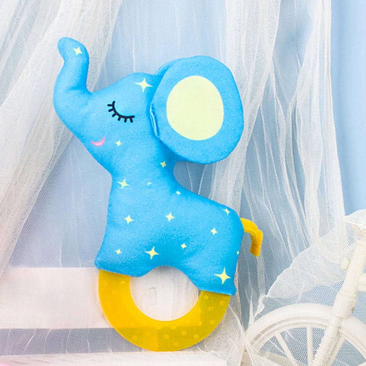 Gryzak Sensoryczny z Cichą Grzechotką Słoń dla Niemowląt 0+