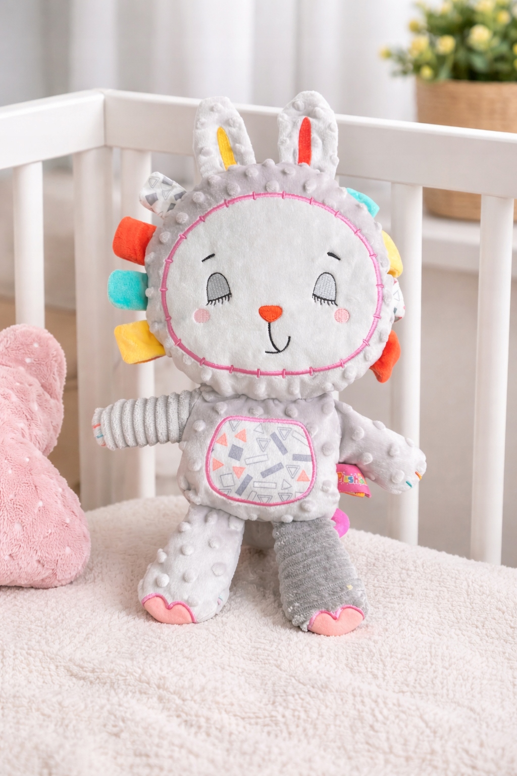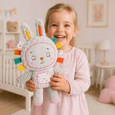 Króliczek sensoryczny to wyjątkowa przytulanka edukacyjna dla niemowląt od 0 miesięcy, zaprojektowana z myślą o bezpiecznej zabawie i harmonijnym rozwoju dziecka. Dzięki wysokości około 35 cm doskonale sprawdzi się jako pierwsza przytulanka, towarzysz snu oraz element codziennych zabaw.