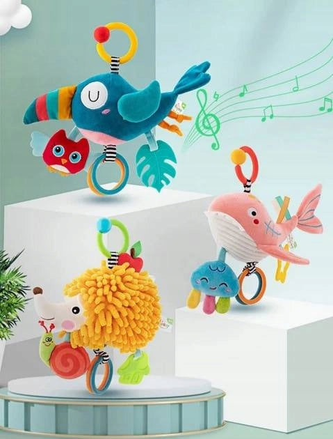 Zabawka wykonana jest z wysokiej jakości, miękkich i bezpiecznych materiałów, odpowiednich dla najmłodszych dzieci. Wszystkie elementy są solidnie przyszyte, a konstrukcja nie zawiera ostrych krawędzi. Pluszowa pozytywka dla niemowlaka jest lekka, przyjemna w dotyku i idealna do codziennej zabawy w domu oraz w podróży.