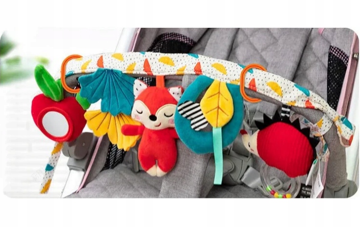 Zabawka wspiera rozwój zmysłów oraz koordynację ręka–oko. Różnorodne zawieszki o odmiennych fakturach stymulują dotyk, a elementy szeleszczące i grzechoczące rozwijają zmysł słuchu. Bezpieczne lusterko pozwala dziecku obserwować własne odbicie, wspierając rozwój poznawczy oraz ciekawość świata. Kolory i kontrasty pomagają w rozwoju wzroku już od pierwszych miesięcy życia.