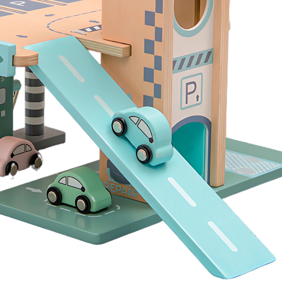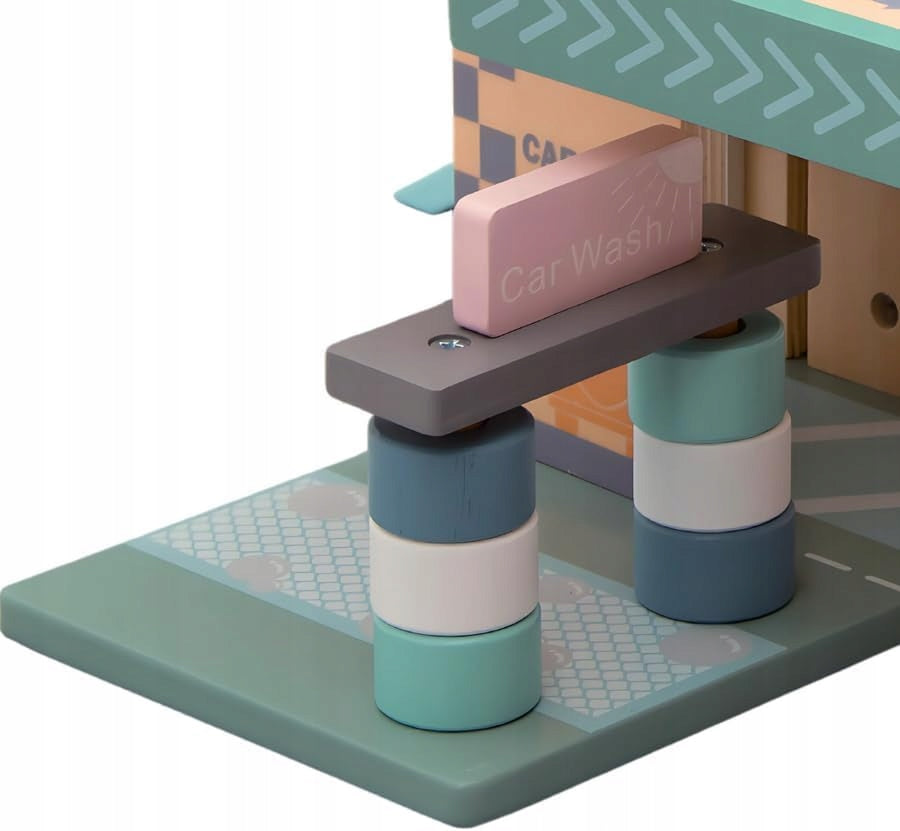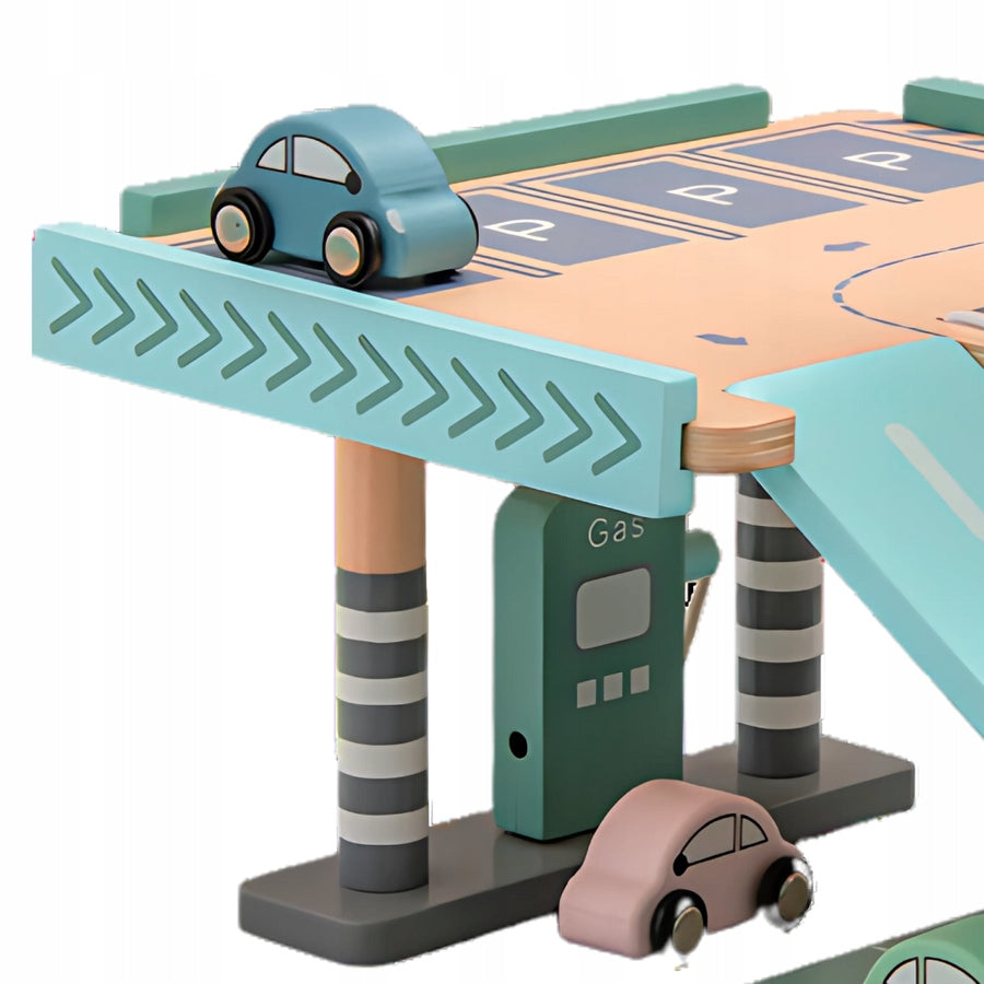 Drewniany Parking Piętrowy Garaż, Winda i Stacją zabawka dla dzieci prezentPH05X009