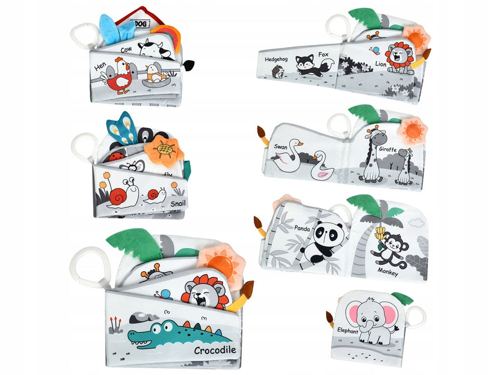 książeczka sensoryczna dla niemowląt, książeczka szeleszcząca, książeczka do wózka, zabawka edukacyjna 0+, zabawka sensoryczna Montessori, książeczka materiałowa dla dzieci, prezent dla niemowlaka
