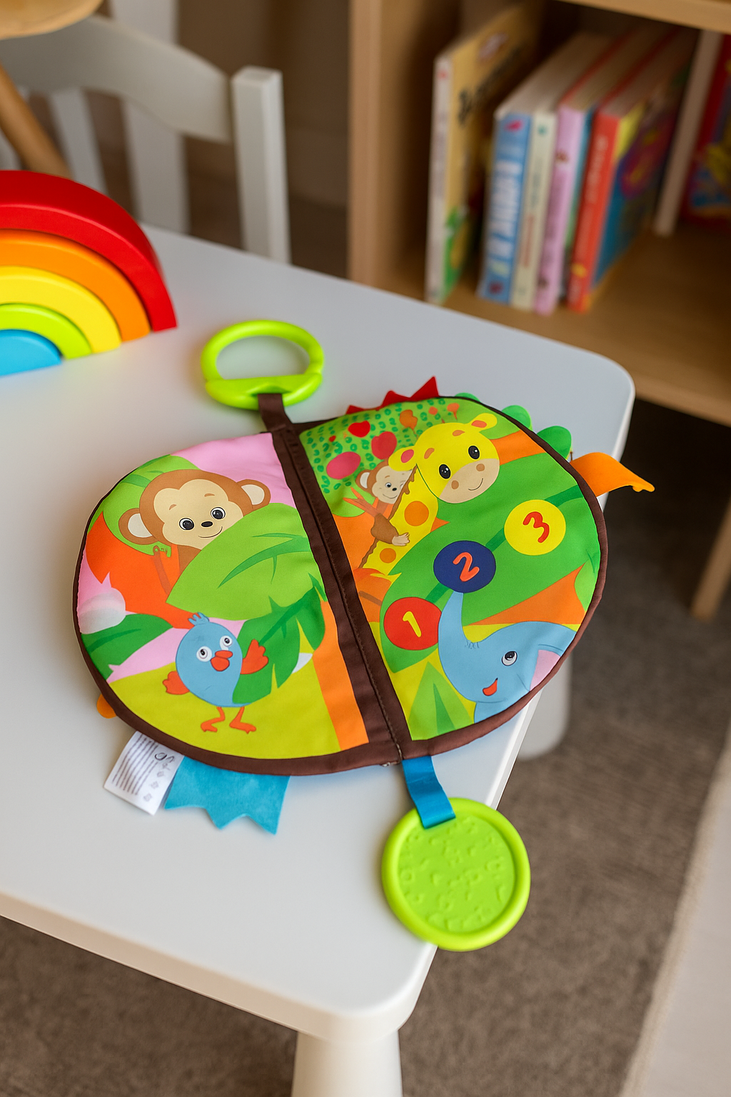 Książeczka „Wesoła Dżungla” – Edukacyjna Książka Sensoryczna z Gryzakiem i Ruchomymi Elementami