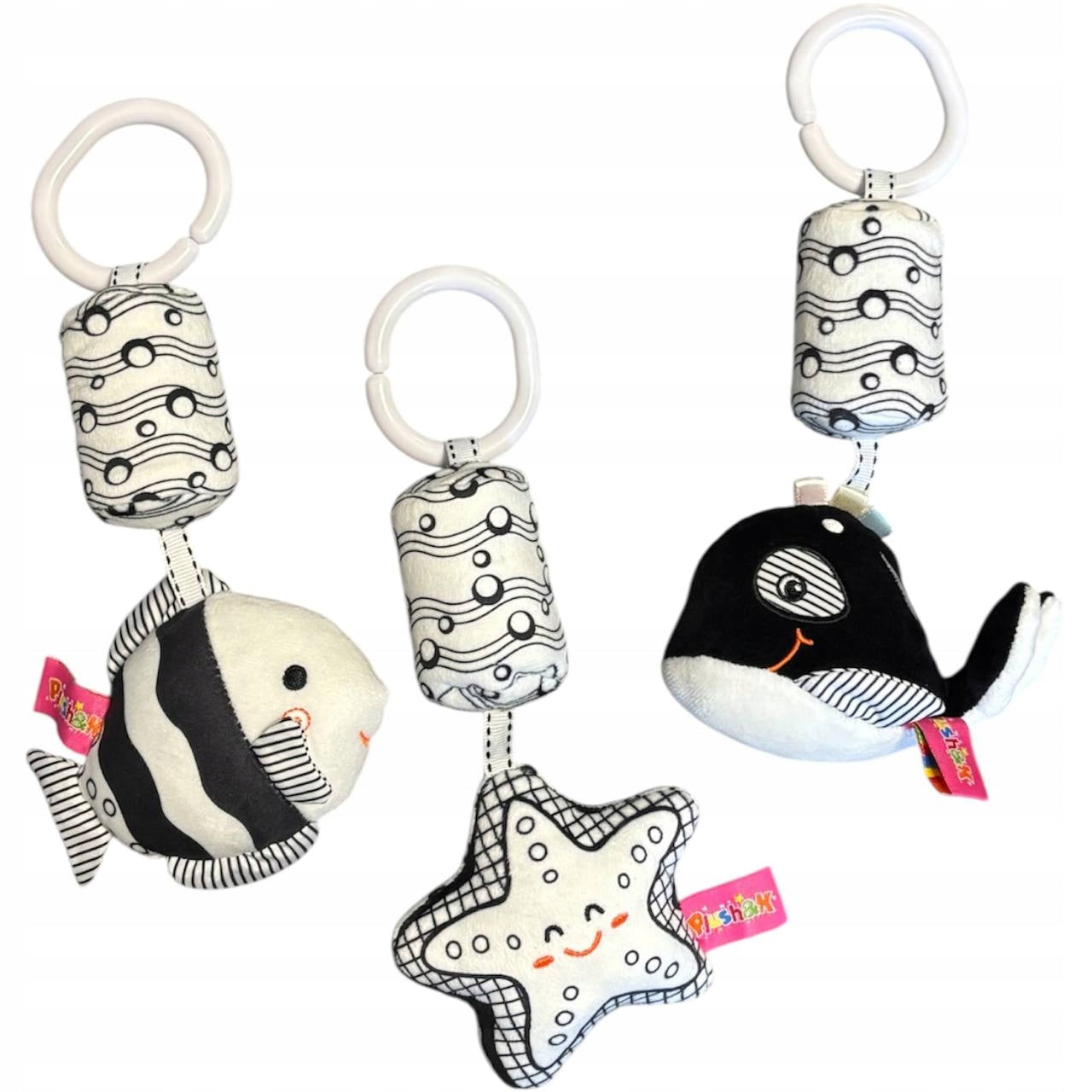 Zawieszka sensoryczna RYBKA kontrastowa dla niemowląt 0+ Zabawka do wózka