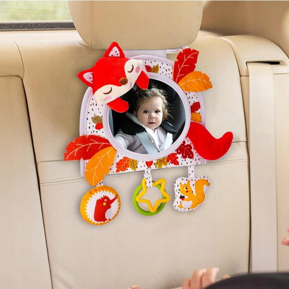 Zawieszka Sensoryczna z Lusterkiem Lisek Montessori do Wózka i Łóżeczka 0+