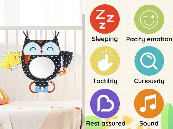 Zawieszka Sensoryczna z Lusterkiem Sowa do Wózka Łóżeczka 0+